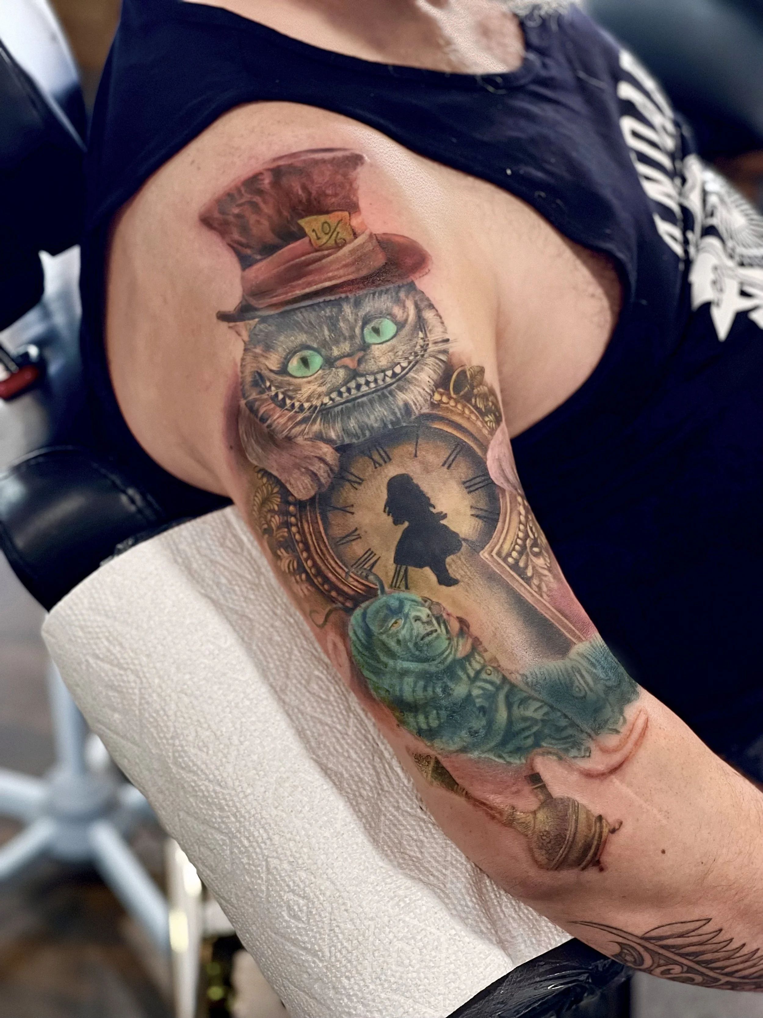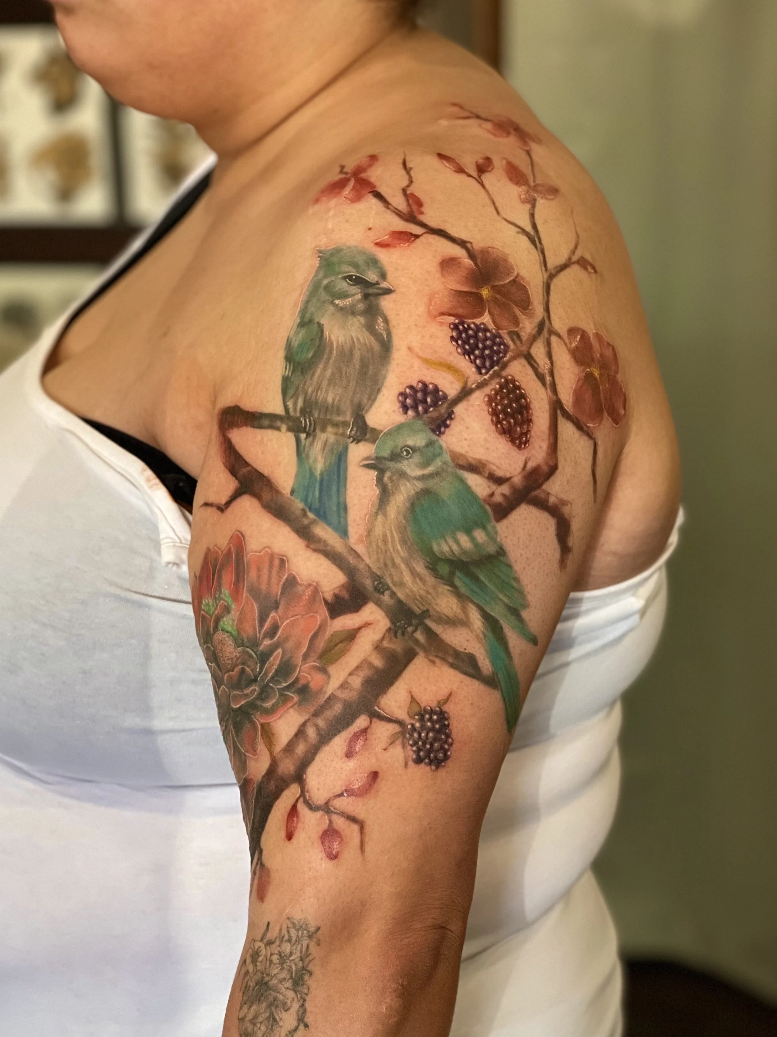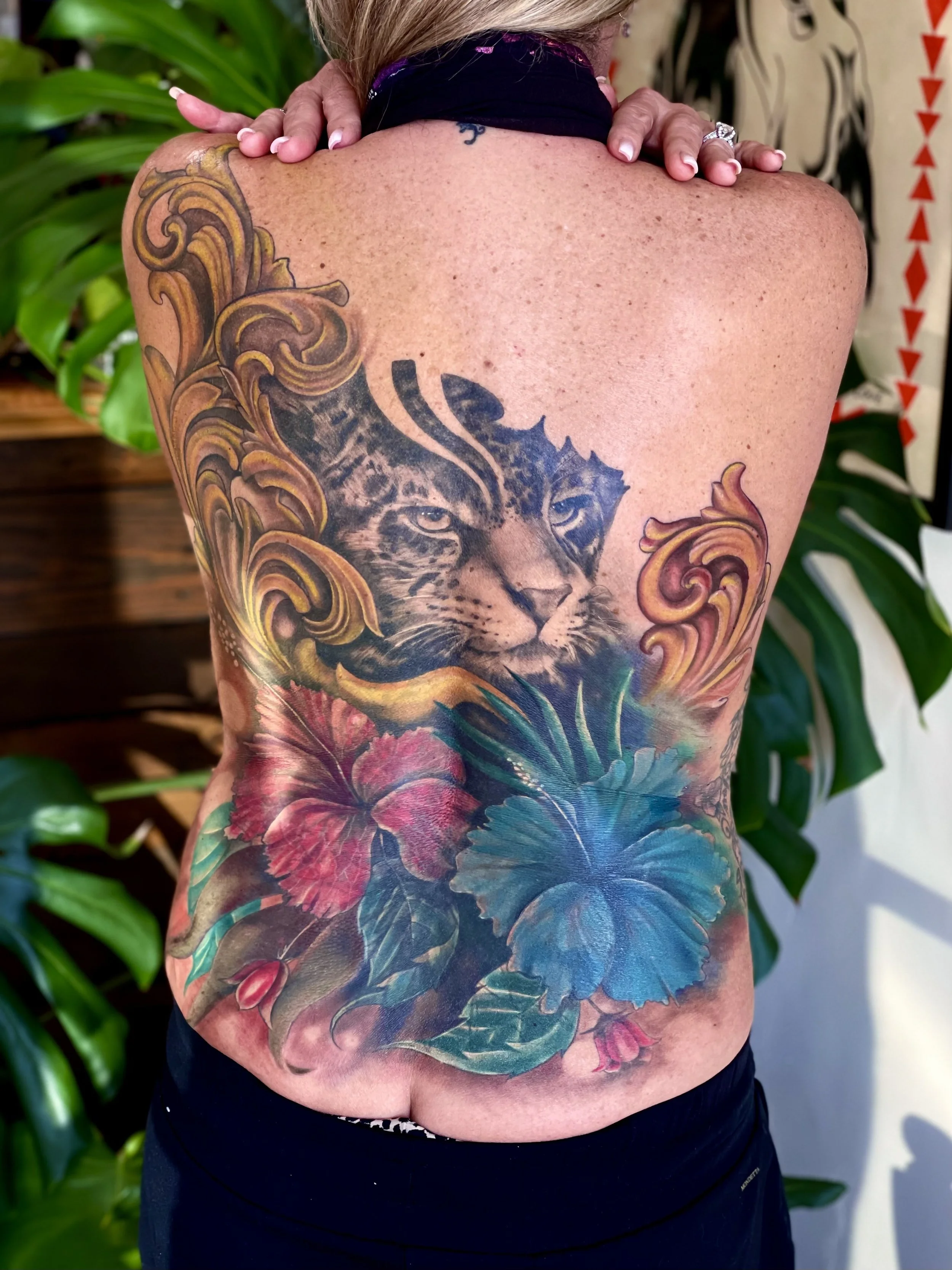 Andrea specializes in full-color realism, black and grey, micro-realism, fine line blackwork, geometric compositions, and advanced cover-ups. One of her signature strengths is transforming existing tattoos into completely new works of art—seamlessly and without the need for laser removal.
